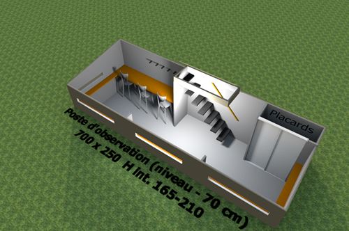 La pièce d’observation dispose de rangement et de plus de 7 m de trappe pour une vision à 180°.