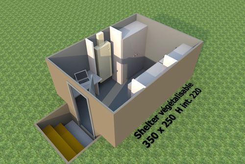 Ce petit shelter enterré de 4m² est idéal pour dissimuler un local technique de piscine dans un jardin.