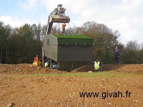 Nous réalisons aussi des sous-bassement étanche en résine pour créer uniquement le fond de hutte (la partie enterrée). Le reste peut être réalisé en ossature bois avec un toit en bac acier.